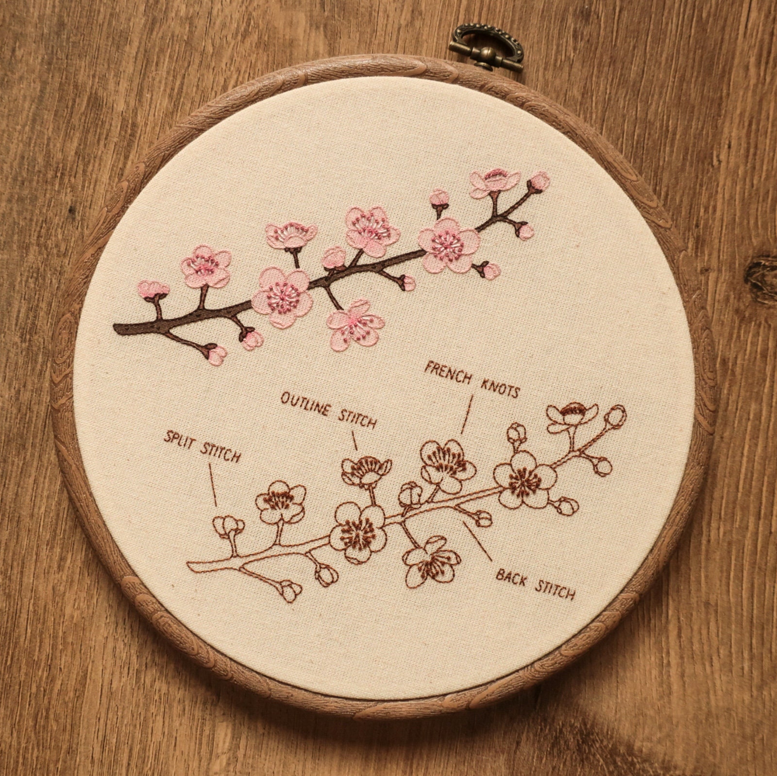 Cherry Blossom Outline Hand Embroidery Hoop Art Modern Hand Etsy Uk