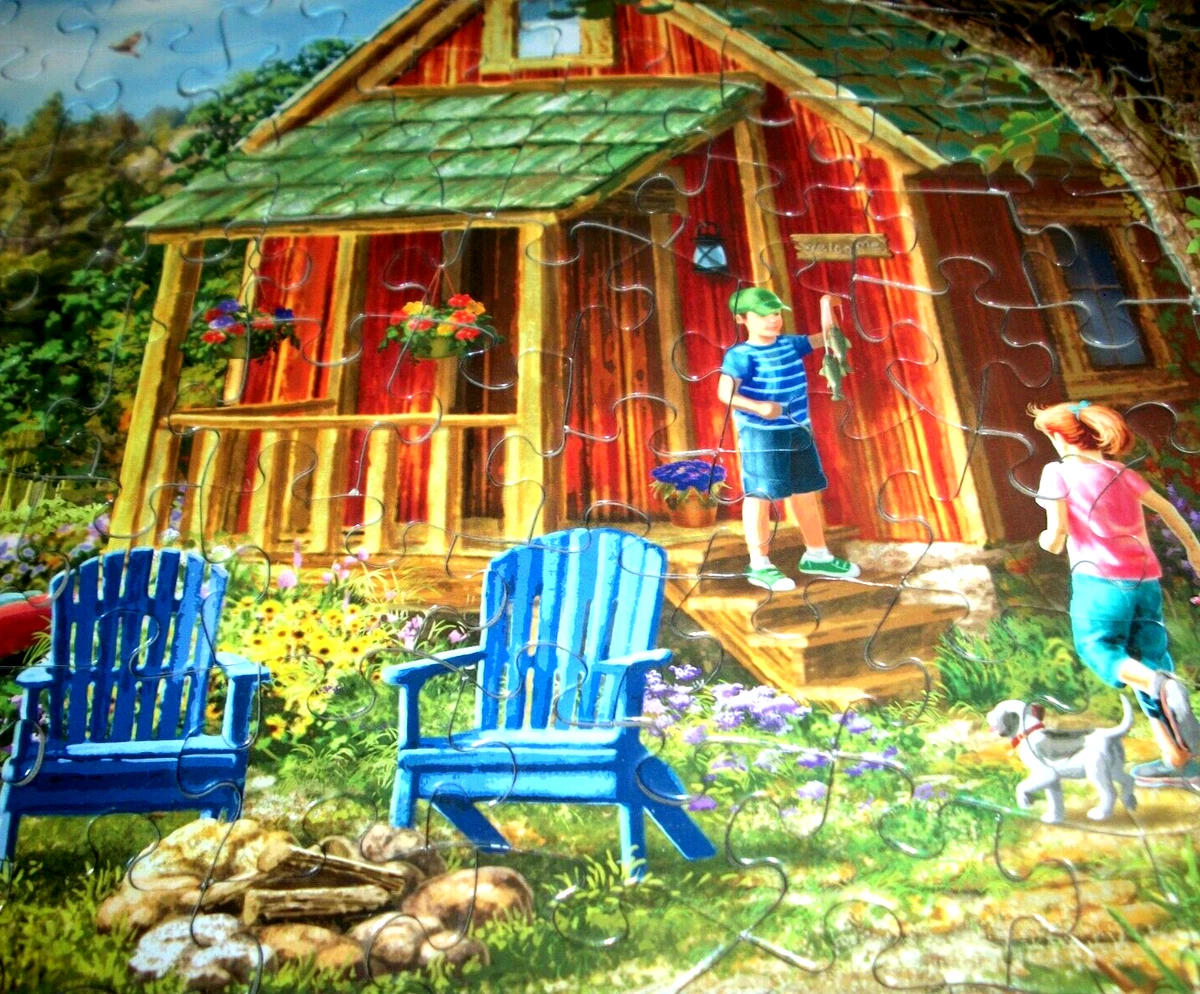 Jigsaw Puzzle 300 Large Pieces Lakeside Weekend Cabin Kids Fun Wildlife Complete Ebay